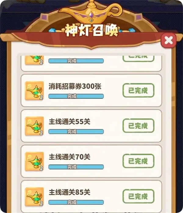 03.通关85关,获得6个神灯。