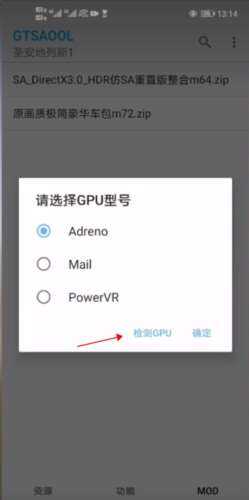 5、然后点(dian)击模组进行解压,解压完成之后需要先点(dian)击检测GPU。