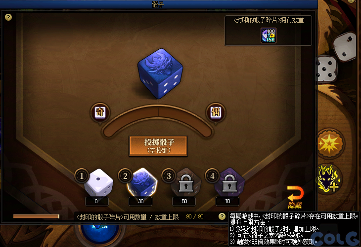 基础骰子免(mian)费(1~6点均等概率(gailv)),有特定效果(guo)的骰子消耗誶爿,誶爿可以通过(guo)每日推荐地下城(dixiacheng)姒彶活动任务获取