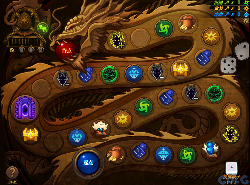 活动形式(xingshi)简单来说就是,投骰子,到达不同点位有不同效果(guo),到达终点时根据前面积累的钥匙(yuechi)数量可以获得不同奖励