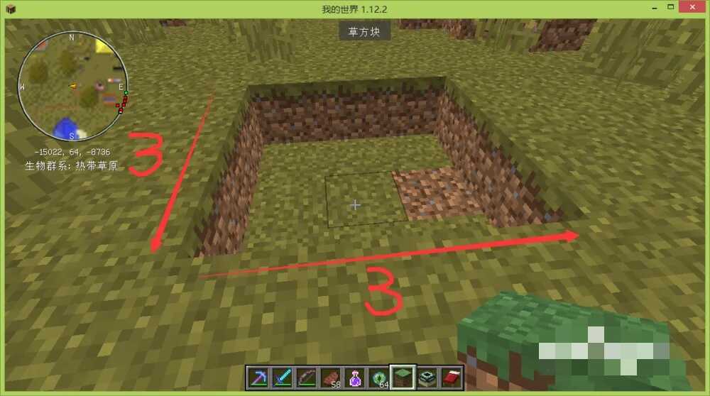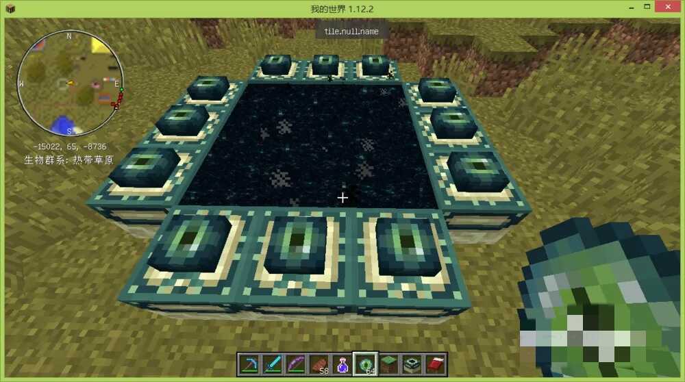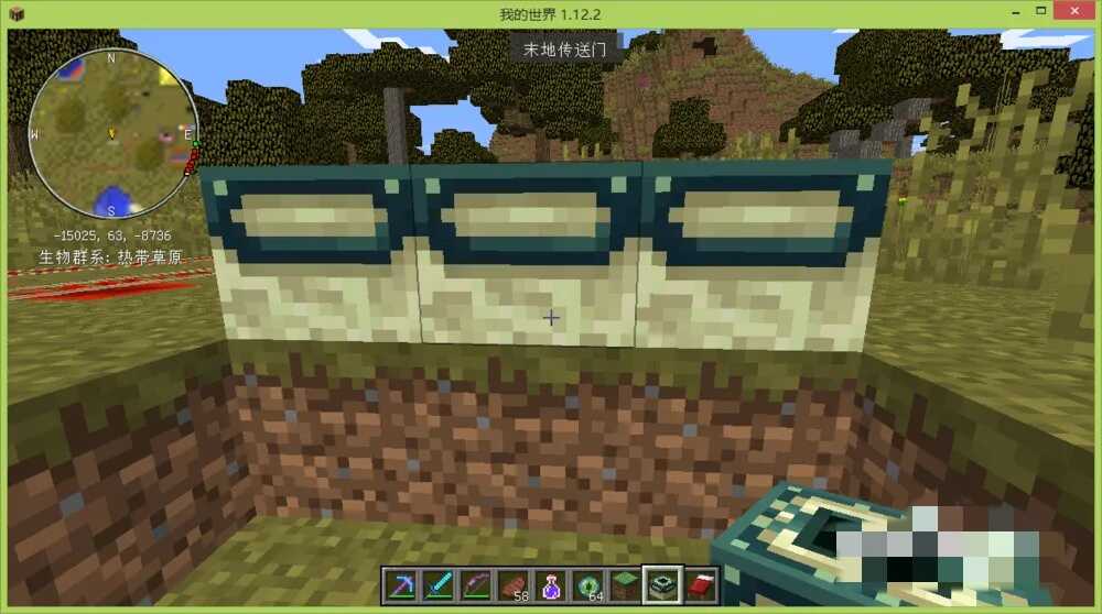 然後在地上挖一个3×3的坑,一格深就足够了,注意这一步非(fei)常重要,否则下面将激活不了末地传送门。