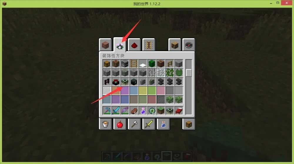 先按E键找到末地传送门還有末影之眼,末地传送门在装饰性方块那个选项中,就是牡丹花那个;末影之眼在杂项也就是岩浆桶那个选项中。