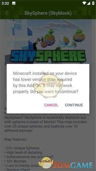 5、在此界面(mian)点(dian)击CONTINUE,点(dian)击完成导入了,随后会自动跳转至我(wo)的世界(jie)游戏。