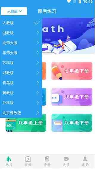 初中数学助手app使用一览首先用户需要在本网站下载安装好这款软件,在线选择自己学习的教材版本,人教版,浙教版,北师大版等等,选择好之后可以看到其中的内容与书上的信息是对应的,玩家们快来了解一下初中数学助手app使用一览具体的内容吧。