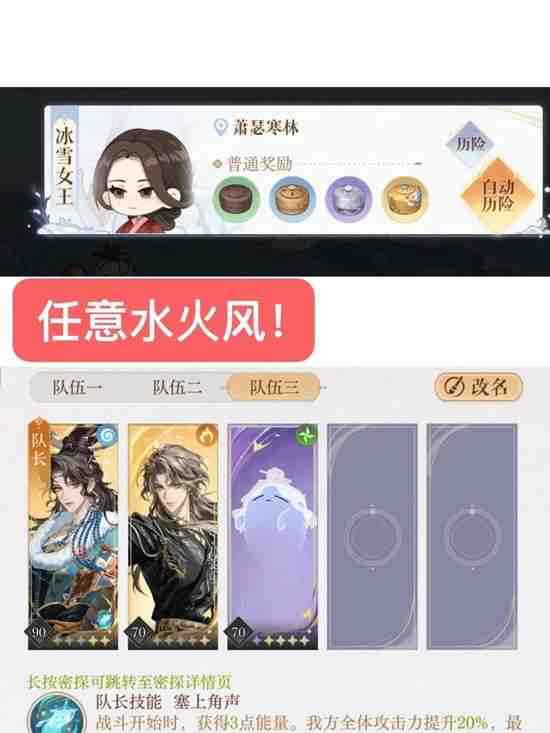 *必备水风火三种密探 其余两(liang)个保命/补伤都行