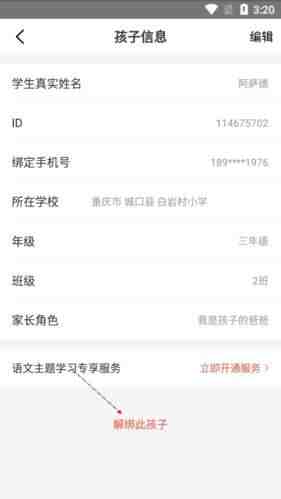 3、点击(ji)最下方的解绑此孩子就好。
