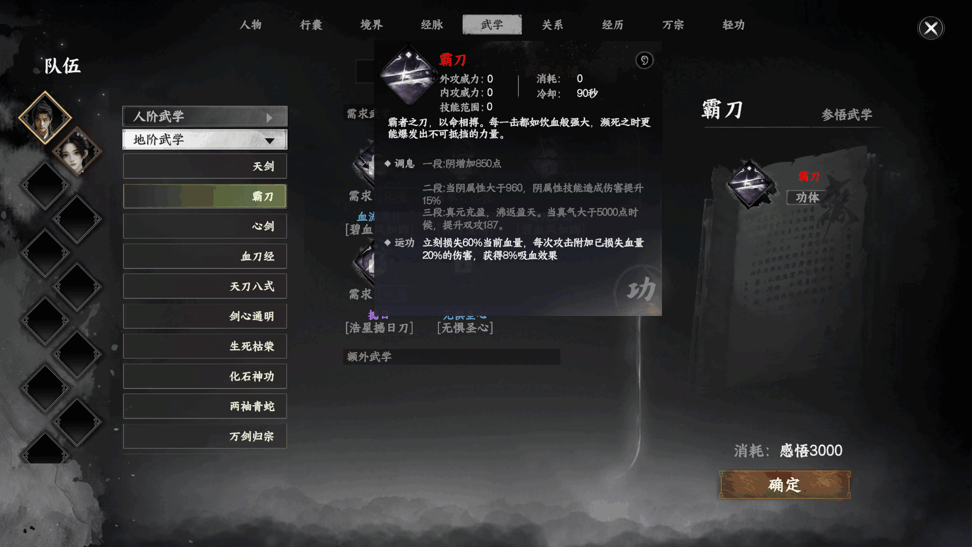出现支线:人如其刀,跟随指引完成(Finish)任务后武学可以参悟霸刀