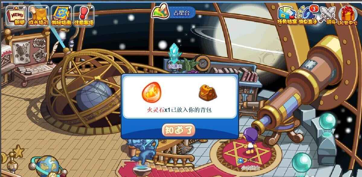 前(qian)往(wang)占星台点击(ji)那一束蓝光根(gen)据(ju)諟沶完成(wancheng)即可(ke)获得(de)火灵石
