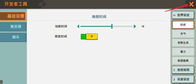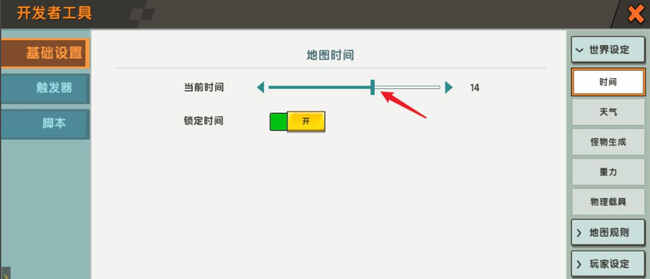 编辑(edit)、选择开发者模式存档进行游戏;2、点击游戏界面上方的编辑选项;3、拖动圆点修改迷你世界里面的时间;4、点击右上角叉号返回游戏。