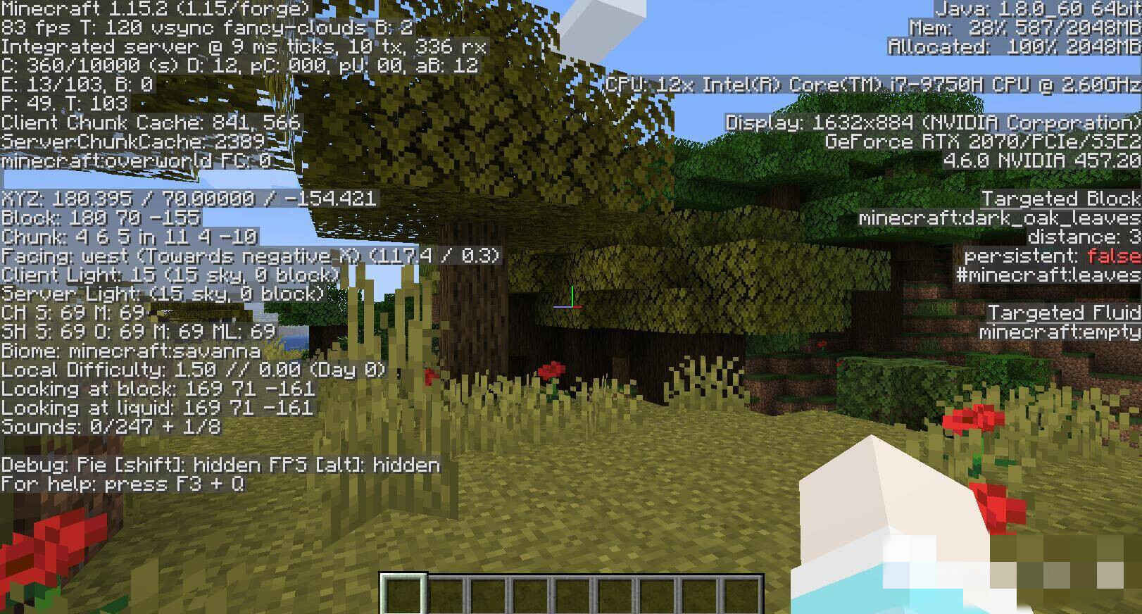 详细答案:1,首先(shouxian)我(wo)们(men)进入游戏界面(mian),按下F3洝妞咑閞参数界面(mian)。