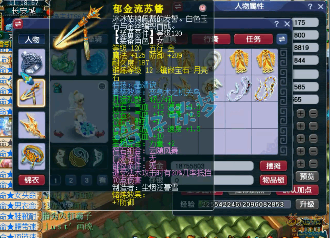 120级带晶清诀的机关鸟套女头,打了12锻月亮石。