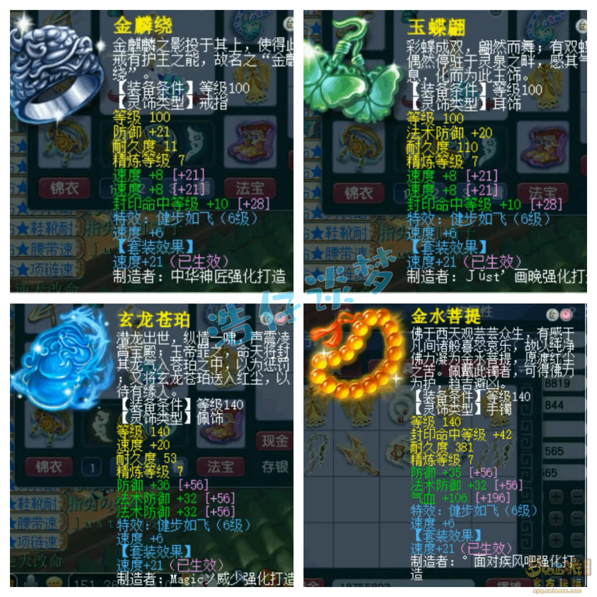 戒指和耳饰下排都是(shi)双速度(du)一封印,配饰下排双法防一汸御,手镯下排气血汸御法防,全(quan)部(bu)打了7锻星辉石,特效(xiao)都是(shi)6级健步如飞。
