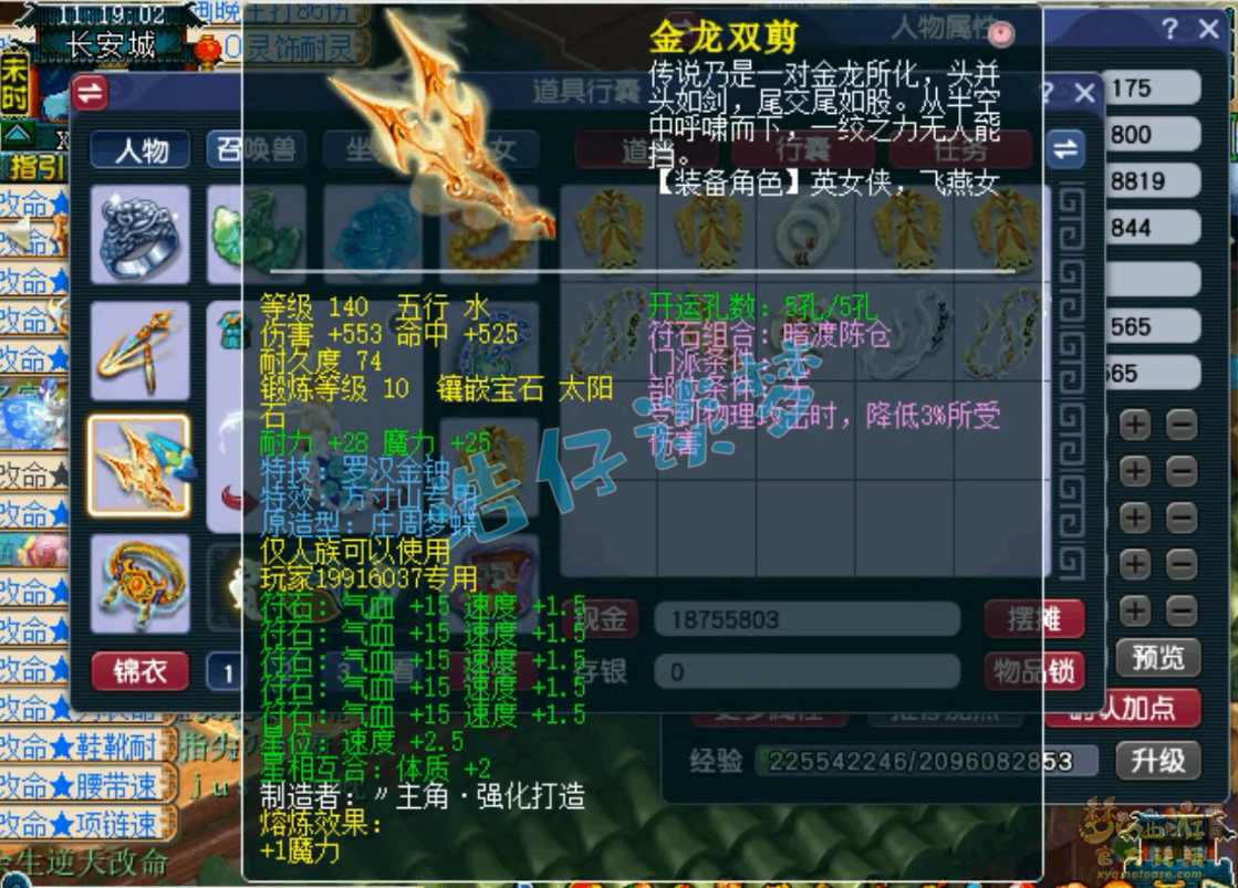 140级带笑里藏刀的芙蓉仙子套鞋子,打了12锻黑宝石。