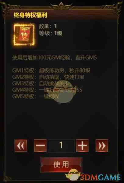 1、新手玩家进入荣耀之怒传奇官方版时,只要上线就(jiu)能领取终身特权福利,直升GM5,一键(yijian)扫荡,一键(yijian)回收超值特权!