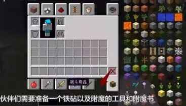 用户先準備1个铁毡以及(yiji)附魔用的工具(ju)还(hai)有附魔书。