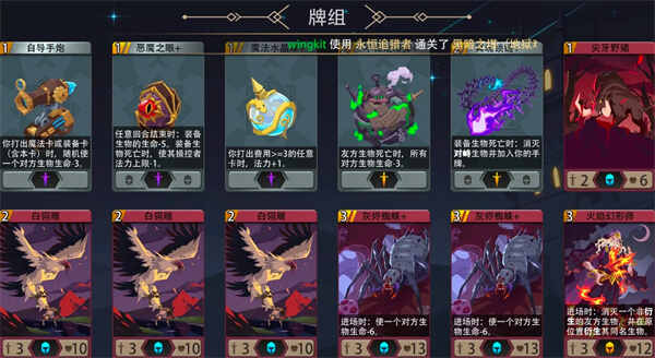 理想卡组:过牌(2~3张)群伤魔法(2~3张)心魔(3张)生物装备(1~2张)英雄装备(3~4张)卡组厚度(22~24张)。