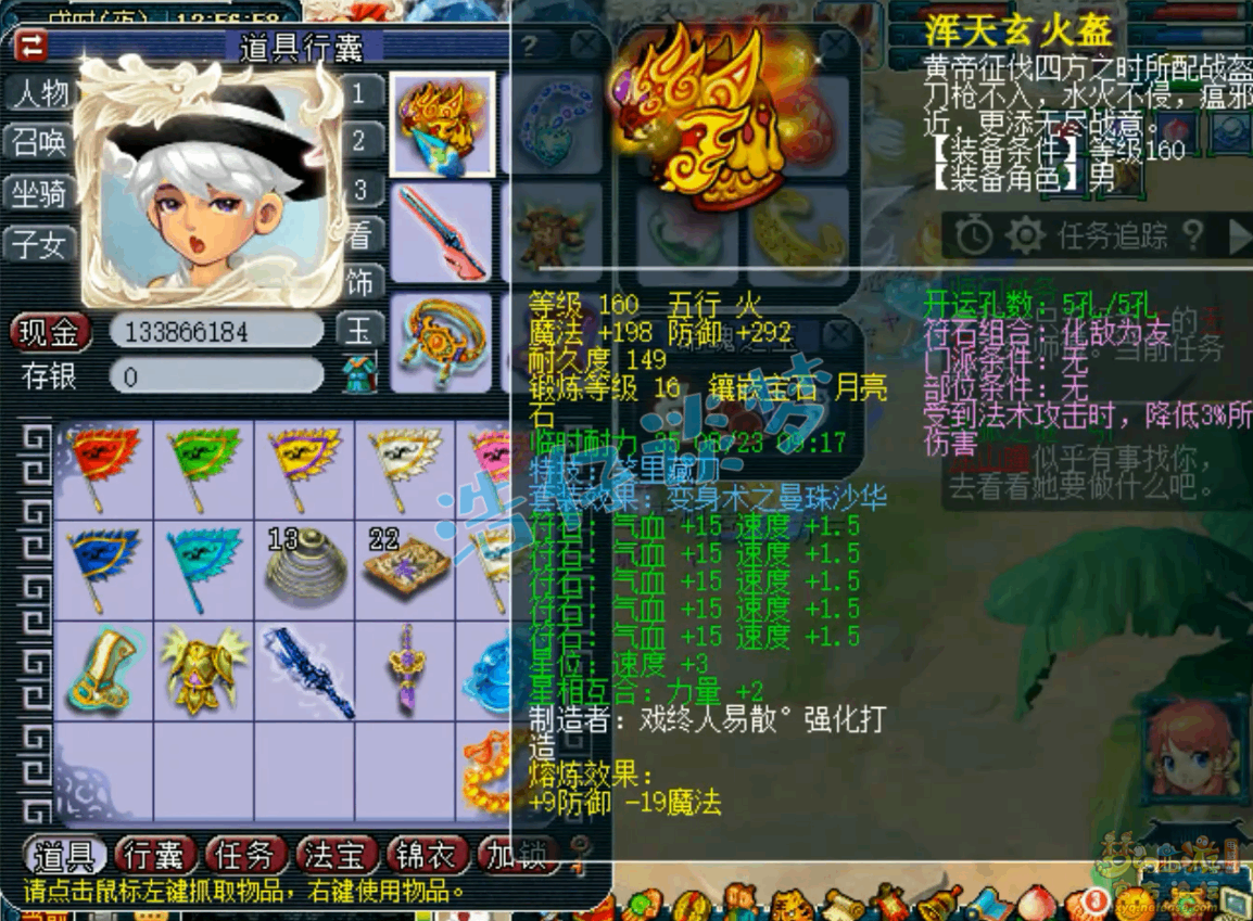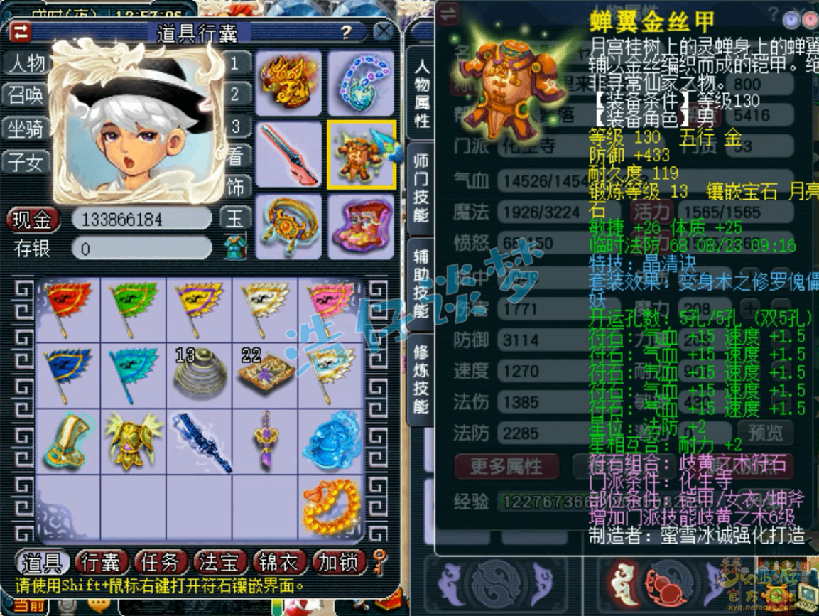 130级带晶清诀的修罗傀儡妖套铠甲,敏体双加51,打了13锻月亮石。