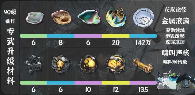 ① 金属液滴系列(lie):凝素领域(yu)·熔毁废都(瑝珑归墟港市焚焰海)、凝素领域(yu)·赦罪庭园(黎那汐塔遗颂河谷右侧)