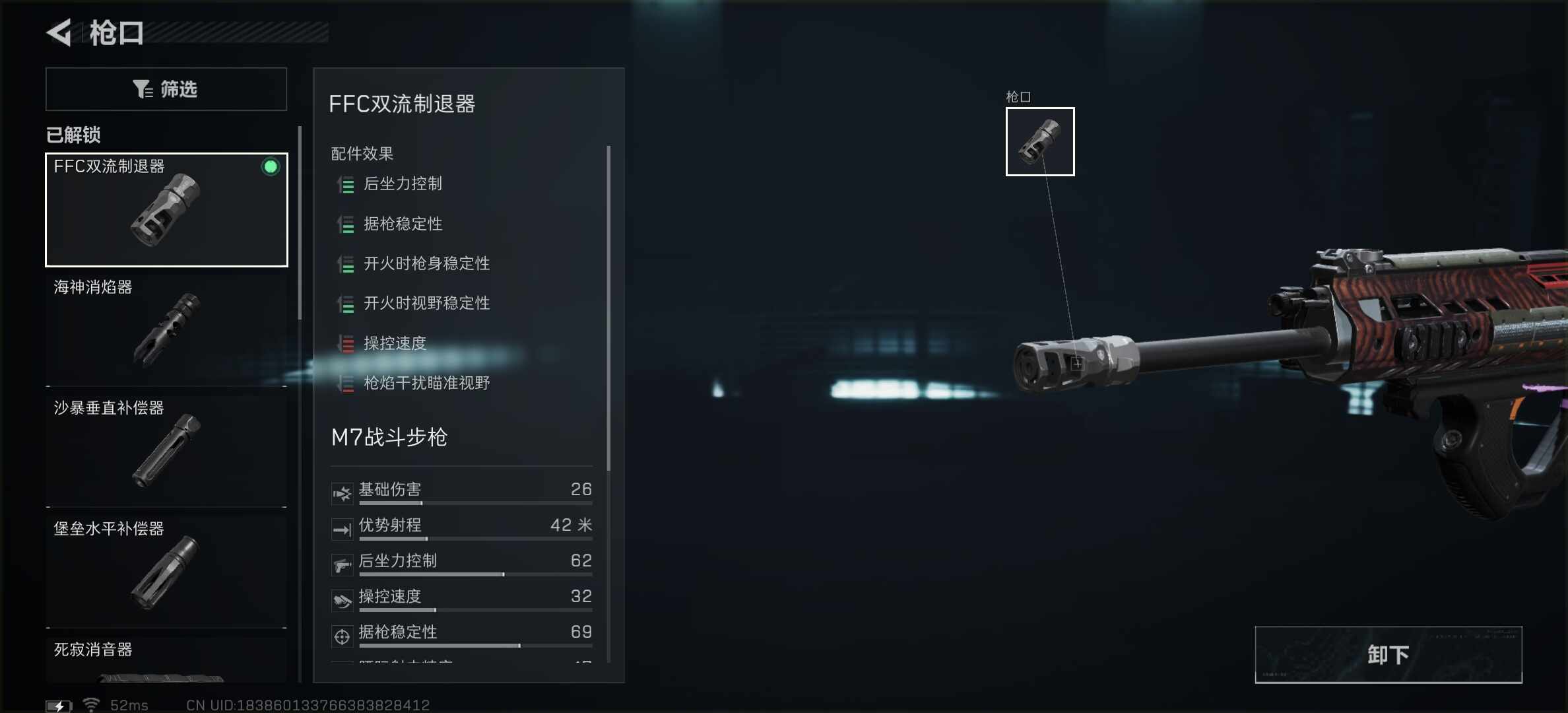 枪口我选择FFC双流制退器,这个(zhege)枪口对比沙暴垂直补偿器,这个(zhege)枪口还有額外的举枪稳定性。