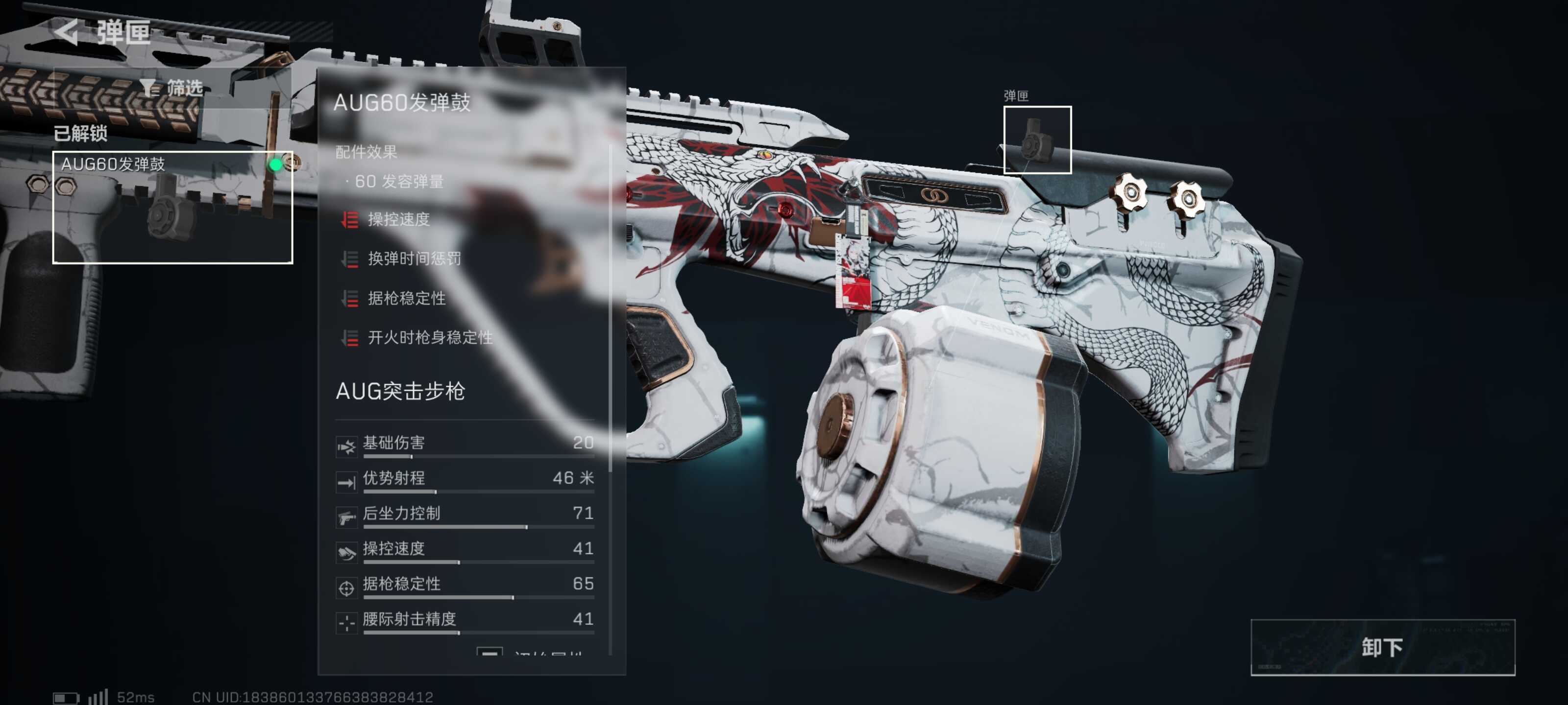三角洲行动超大弹鼓AUG突击步枪改枪码