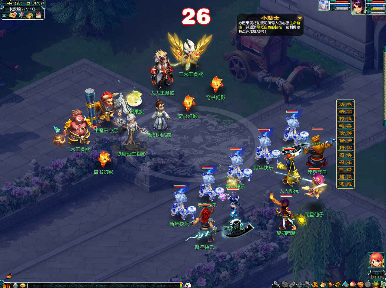 玩法介绍:元旦仙子来到长安,委托各位少侠帮助三界众生实现愿望、收集心愿之力。
