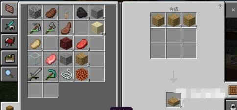 3.进入(Enter)工作台页面,先把木头放工作台左侧九宫格里合成(cheng)木板,再把3块木板合成(cheng)木台阶。