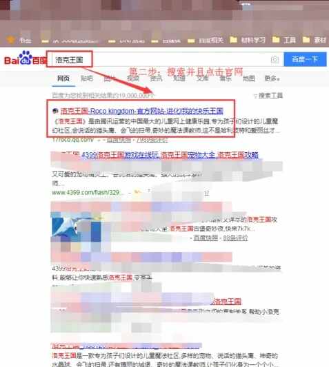洛克王国創建新角色步骤二:打开电脑浏览器以(yi)后,采用搜索引擎搜索并且(bingqie)进入游戏官网。