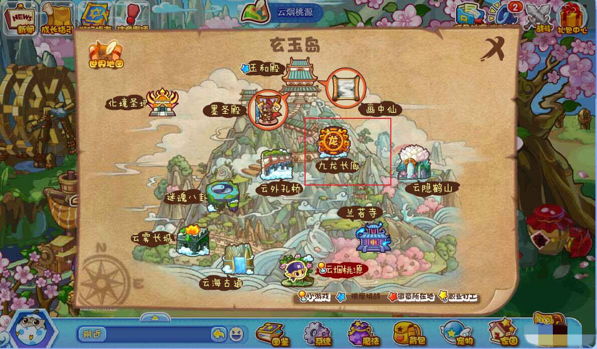 1.洛克王国九龙长廊在玄玉岛,玩(wan)家只需(xu)進入游戏后,打开(kai)地图(tu)。