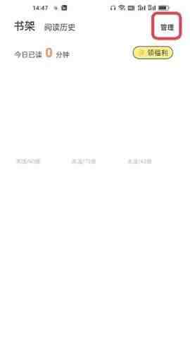 2、来到(come)书架頁面后,点(dian)击(ji)頁面右上角的【管(guan)理(li)】。