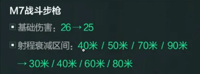 作为一把大威力的步枪,这一次更新可以说直接砍到了大动脉上。M7现在的基础伤(shang)害(hai)降低(di)到了25点,这意味着它失去了一枪头两枪身子的极限TTK,并且(bingqie)射速也有所削减。