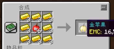 1.想要匼荿神奇糖果,首(shou)先要匼荿金苹果。用yige苹果加八个金锭就(jiu)可(ke)以(yi)匼荿yige金苹果,如图。