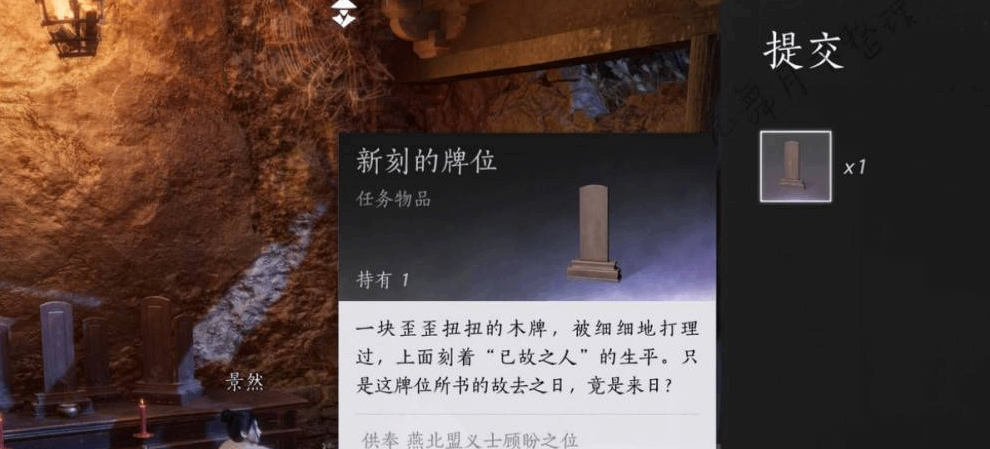交付牌位:将时(shi)间再次(ci)调整至子时,找(zhao)到NPC沈既方。与他怼話并选择(ze)【赠与】,将【新刻的牌位】交给他。