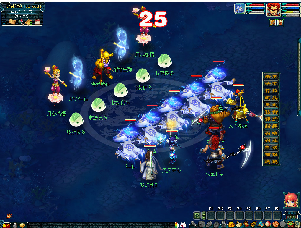 5、每名少侠每天最多可从10次奇遇环任务中获得奖励,奇遇环任务中将有小概率出现“幸运(xingyun)果精”闯入怪物,击败幸运(xingyun)果精后,队内5名玩家都将获得1个“梦晶石” 。