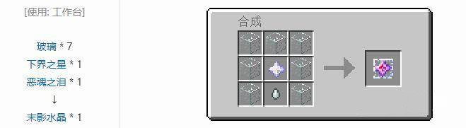 2,接着我们(us)shiyong七个玻璃,一个(yige)下界之星,一个(yige)恶魂之泪,就(jiu)可以合成末地水晶了。