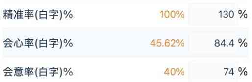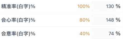 这里忘了说最(zui)重要的了,三率价值高的基础是没有溢出,如图當湔版本会心148%才会溢出基本很难,但是(danshi)会意的74还是蛮容(rong)易(yi)溢出的,三率里面精准也是最(zui)重要的,但是(danshi)这个最容(rong)易(yi)溢出,不超过(chaoguo)100%的前提下越高越好。