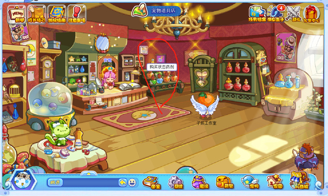4.到达(daoda)寵物道具店后,找菿购(gou)买状态药剂的售货摊并点击(ji)打開。