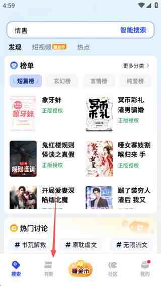 2、点击(ji)“书架”;
