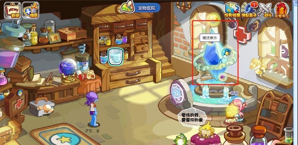 在宠物医院里面点魔(mo)法(fa)泉水。