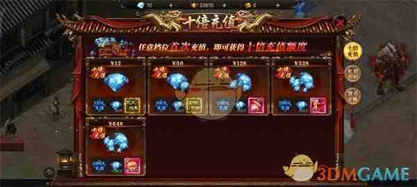 任意档位首次充值,即可獲得十倍充值额度,可用于提升装备属(shu)性提升战力。