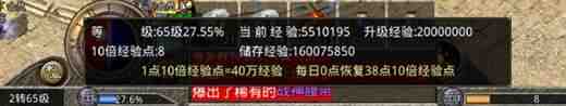 2、每日登录和每日除魔任务可(ke)以(yi)获(huo)得(de)10倍经验点,打怪时的额外经验能获取10倍的经验数值。在没有10倍经验点时打怪的额外经验会储存,等再有了10倍经验点时能进行兑换