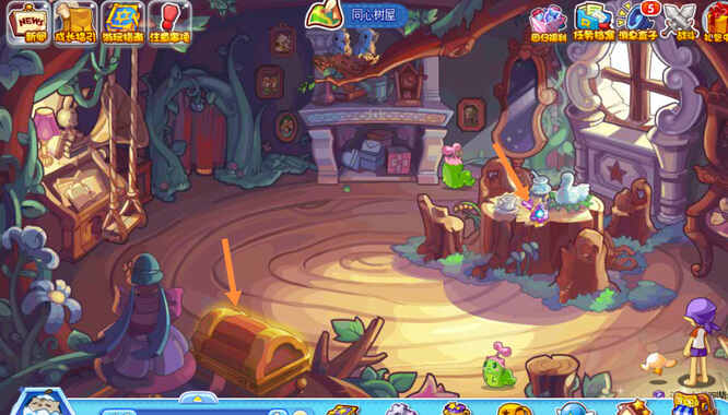 3、第三处在同心山顶的同心树洞,需(xu)要(yao)用桌子的钥匙打(da)开(kai)寶箱,就能拿到木灵石。