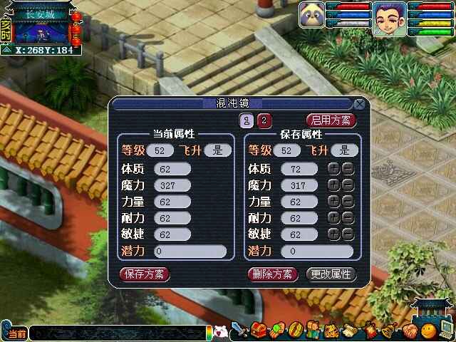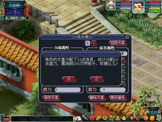 玩家升级后,保(bao)存在混沌镜中的属性方案已经会获得相应的潜力点。保(bao)存在混沌镜中的方案有潜力点则无法(wufa)开始属性更换(genghuan),需要将保(bao)存的方案里的潜力分配完毕才能开始更换(genghuan)操作,保(bao)存的方案每点潜力点分配需要消耗5万两。