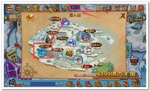 再选择游戏界面上方的雪人谷,点击地下冰窟就可以到达该场景咯!