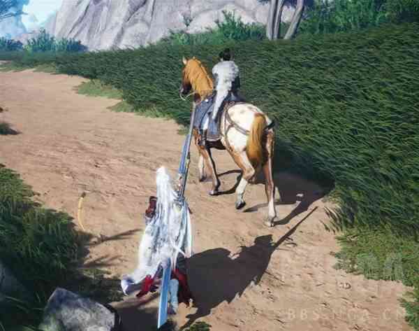 我们只需(xu)要(yao)大轻功跳两下,再千斤坠下来,骑手的马就刷新了。