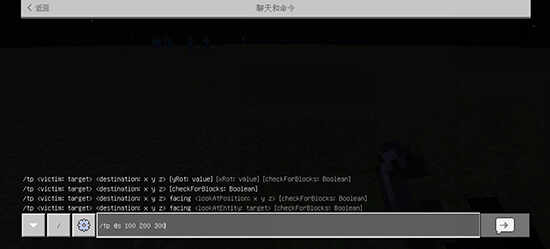 2、在对话框中,输入(shuru)传送指令/tp x y z或/tp 玩家(player)名 x y z;