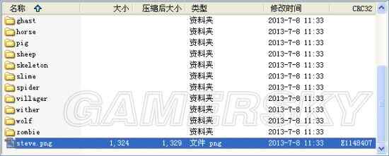 11、把下好(hao)的皮肤放在(fangzai)zheli面,添加(tianjia)完了再把steve.jpg適個图片删了,再把你下好(hao)的皮肤的名字改成steve.jpg。