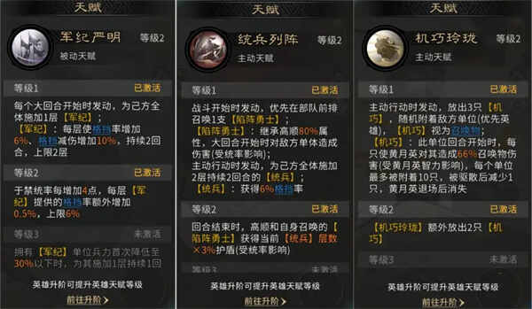 高顺发动天赋【统兵列阵】,为我方全体施加统兵(增加格挡率),进一步提高我方全体承伤能力,觉(jue)醒(xing)技能【陷阵之志】再为我方全体施加额外统兵层数,并有概率令己方召唤物立即(ji)行动一次,可以和黄月英觉(jue)醒(xing)技能【木牛流马】互相配合。