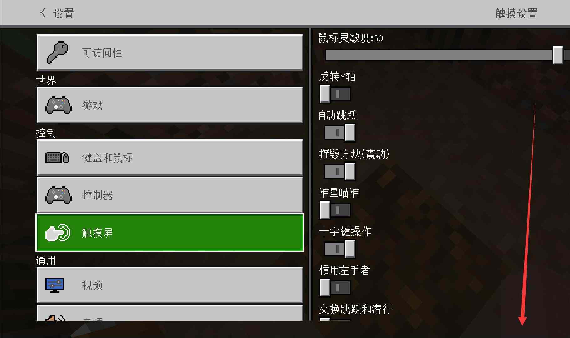 我的世界怎样设置移动键大小我们直接在游戏界面中直接点击返回键;然后,在这里选择设置选项;接下来,我们直接选择触摸屏分类;在这里我们直接按照箭头方向向下滑动;找到尺寸大小的这个调整界面进行修改,接下来就给大家带来我的世界怎样设置移动键大小的介绍。