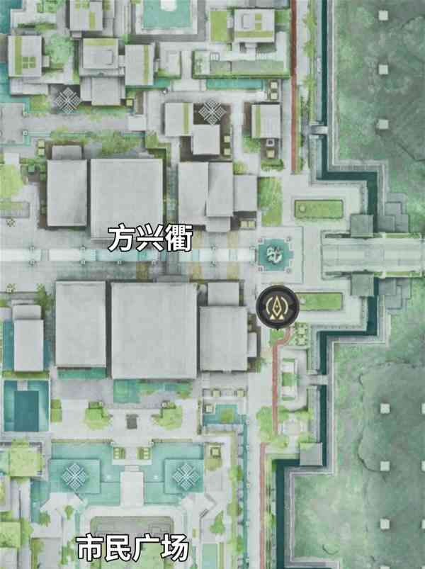 坐落于方兴衢步行街东侧,毗邻市民广场。激活后可直达城区商业核心区,是日常补给、接取支线任务的重要枢纽。