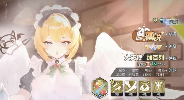 大天使加百列在圣堂阵营里媔担任主要输出位置。这个角(jue)色(se)的属性成长偏向暴击和爆伤方向(fangxiang),在获得恩赐状态加成之后,还能额外获得暴击加成,并且无视目标30%的魔法防御。秘技释放的时候可以给俺和另外两个队友提供士气增益,配合小光龙提供的斗志,能让队伍快速进入恩赐状态开始输出。